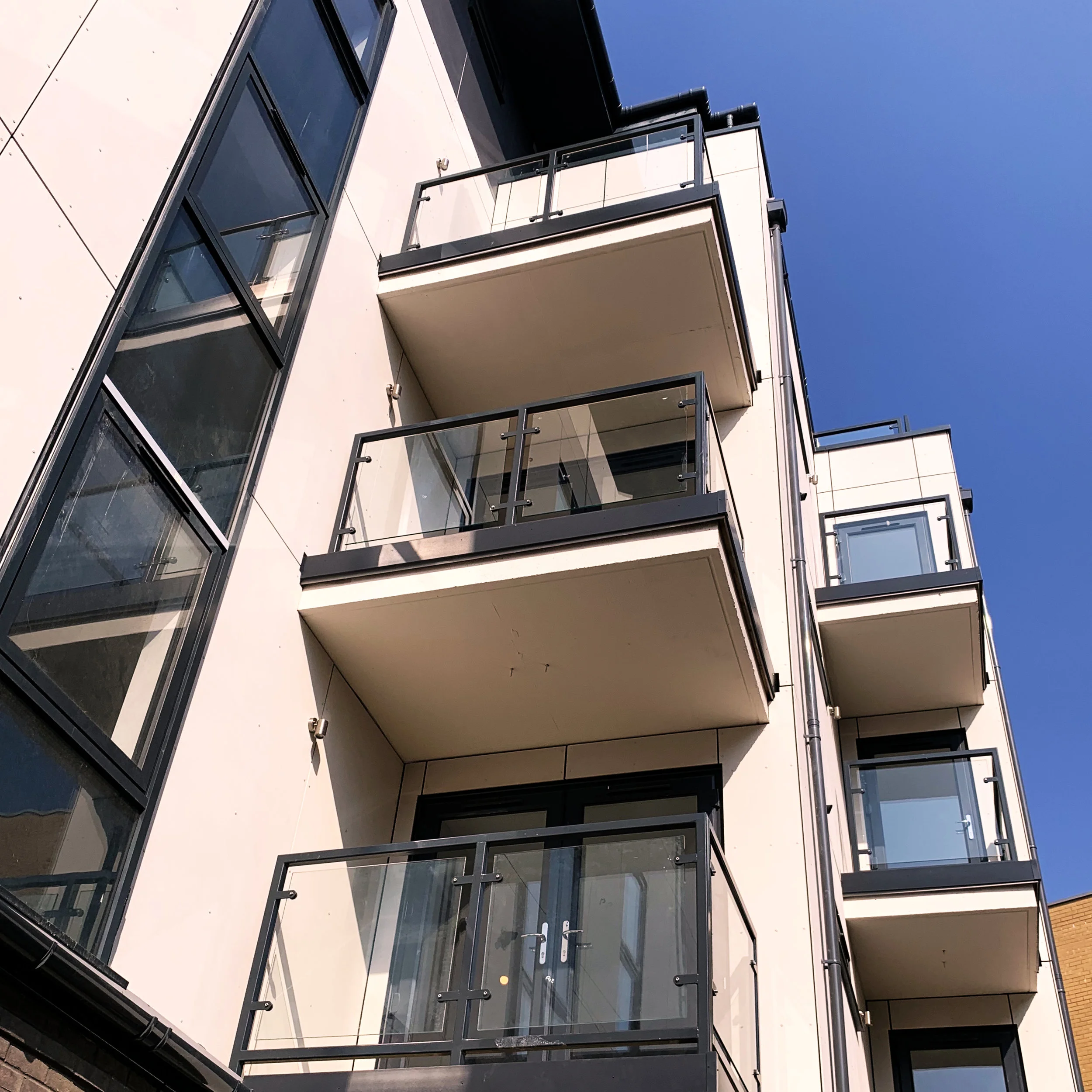 New build development in Greenwich London, 18 private apartments, fully bespoke steel, glass balconies. Great team work, great client to work with.