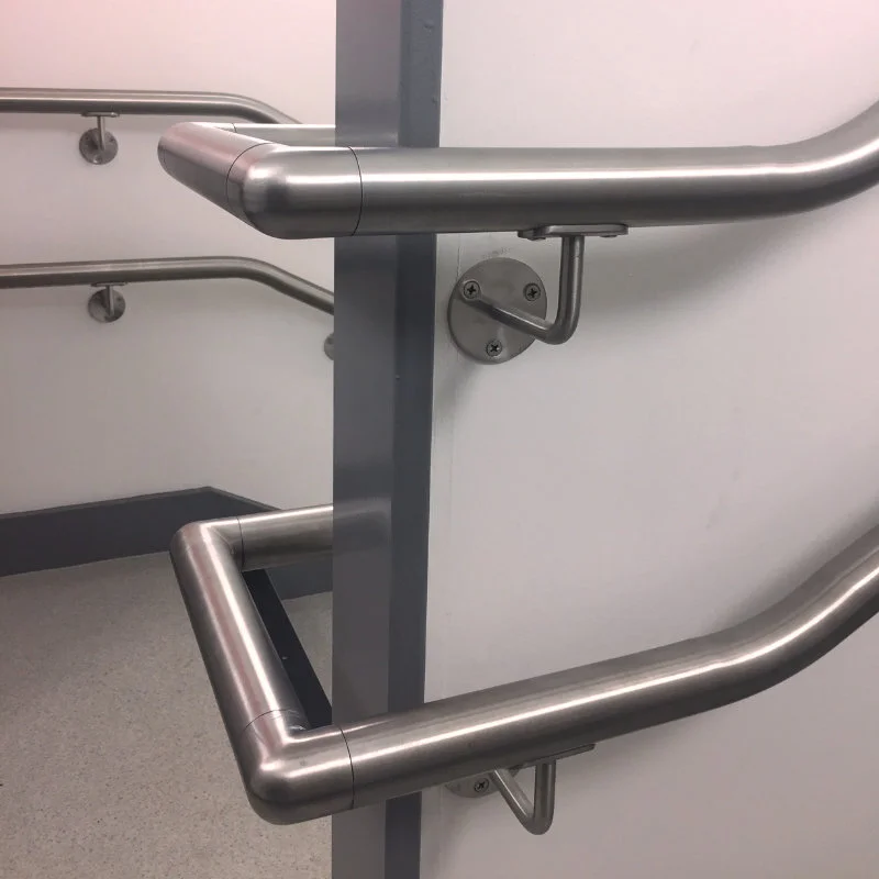 Internal staircase, stainless steel double height handrail for childrens school. lots of angles lots of height. safety first.